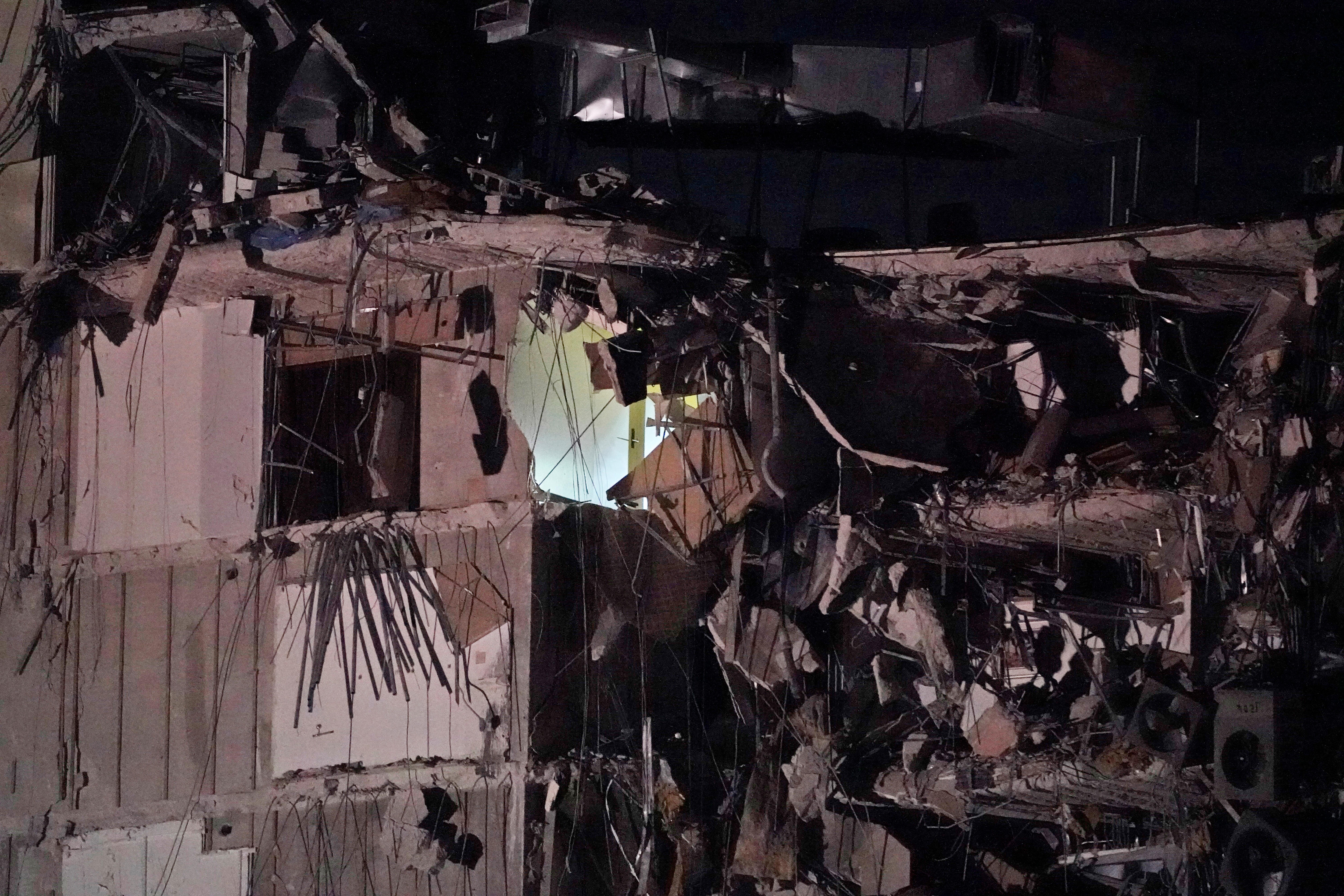 An early morning partial building collapse in miami caused a massive response of emergency responders thursday. A partially collapsed building is seen early thursday, june 24, 2021, in the surfside area of miami, fla caused a massive response from miami dade fire rescue. Television footage showed bunk beds, tables and chairs still left inside the damaged apartments. Miami dade fire rescue is conducting search and rescue. — a large oceanfront condo building near miami beach partially collapsed early thursday morning, killing at least one person, injuring another 10 or more as the frantic search for survivors continued, florida gov.